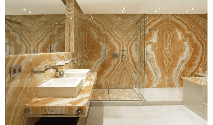 Оникс Alabastro Egiziano –полупрозрачный минерал, хорошо пропускающий свет. Цвет варьируется от молочного шоколада до желто-горчичного. Узор слоистый, формируется нежными волнистыми линиями и точечными вкраплениями.